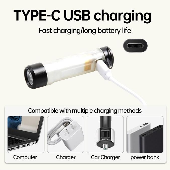 Compact power for every adventure: a compact, lightweight LED flashlight with a long-lasting rechargeable battery. Ideal for hiking, travel, or emergencies, it fits easily in your hand or bag without weighing you down. Portable, efficient, and reliable—so you're always ready, wherever you go.